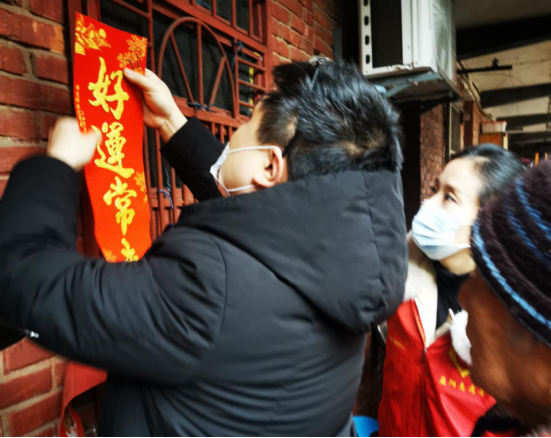 志愿服务迎新春。中心全体干职工于1月26日进南站社区开展“迎新春 送祝福”志愿服务活动。上门给困难群众送上米、油等慰问物资,并为他们贴上春联,增添节日气氛。