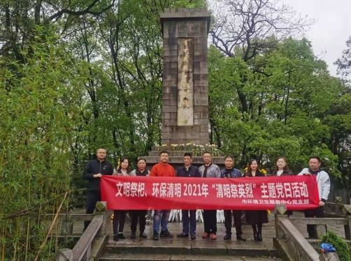 为深化党史教育,弘扬爱国主义精神,引导党员干部铭记革命历史,缅怀革命先烈,4月2日,市环境卫生服务中心党支部全体党员到曾士峨纪念碑开展“文明祭祀·环保清明”2021年清明祭英烈主题党日活动。