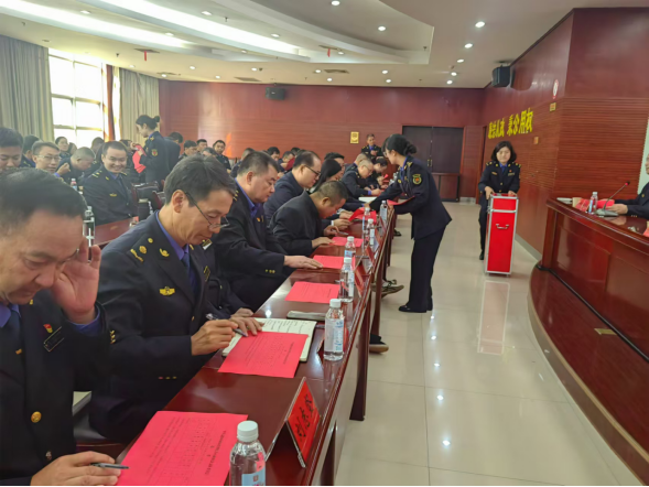 第一届支队党委书记周立舟代表新当选支队党委委员、支队纪委委员进行表态发言,他郑重承诺:新成立的支队党委将不忘初心、秉持恒心、永葆清心,力求在党的建设上有新成绩、在城市管理综合执法上有新作为、在廉政建设上有新突破。