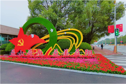 各点位摆花造型各具特色。市委市政府大院附近“益山益水、益美益阳”主题绿雕,将党旗、五角星、和平鸽、山、水等结合起来,既体现益阳特色,又与党政机关庄严肃穆形象相贴切。