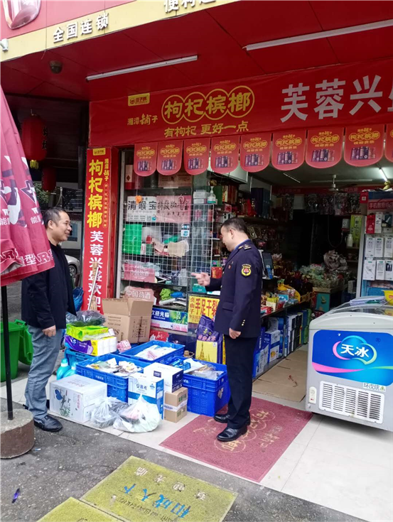 城管执法队员劝止商户越门经营