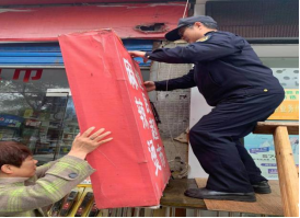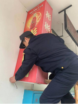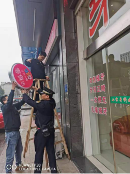 统一店招店牌,打造团圆路示范街。为进一步净化城市空间,实现城市管理精致到位,提高辖区沿街门店广告牌匾的设置水平,4月1日,市城管执法局直属五大队在团圆南路开展“统一店招店牌,打造示范街”专项行动。对沿街店面进行摸底统计,向一店多牌商户下达整改通知书,协助部分自行拆除有困难的商户进行现场拆除。共计拆除一店多牌30余家,清除玻璃胶贴广告20家,规范店牌设置45家。对团圆南路21家门店招牌进行了集中统一打造和提升,完成了208平方米的招牌规范工作。拆除墙面广告20家,面积220平方米。