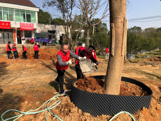 上午9点左右,市市政工程服务中心全体志愿者带着锄头、铁锹、剪刀等劳动工具来到了结对帮扶村幸福村。大家分组分工合作,有的培土、除草,有的剪枝,浇水,最后再一起填土踩实,每道工序都有条不紊,齐心协力为大地增添绿色。