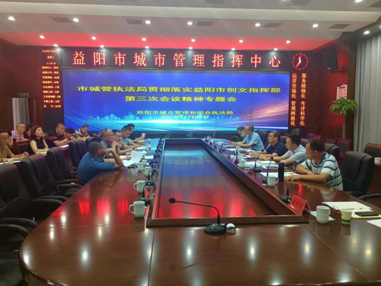 7月20日,市城管执法局党组书记、局长张靖华召开会议,贯彻落实益阳市创建全国文明城市指挥部第三次会议精神,部署我局牵头工作,全面推进全国文明城市创建工作向纵深开展,确保各项工作取得扎实成效。市城管执法局在家班子成员,创文专项督查组、市直和中央驻益单位、资阳区、赫山区、高新区相关负责人参会。
