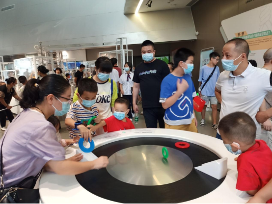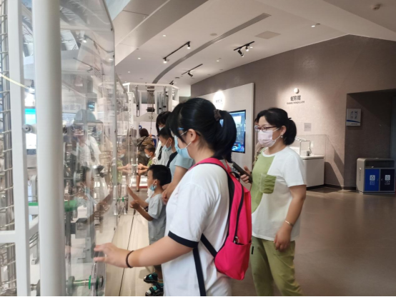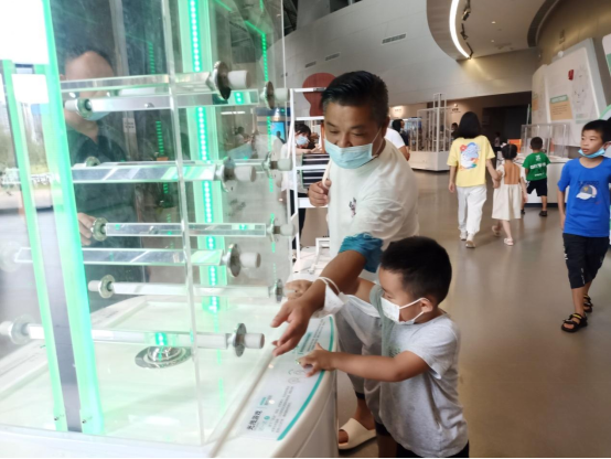 参观科技展品时,孩子们对那些展出的科技作品产生了浓厚的兴趣,一边参观,一边和家长、小伙伴们讨论。通过互动、参与、演示的方式,大家在参观体验的同时,学习了声光物理、运动旋律、声音传播、机械电能等丰富的科学知识。在近两个小时的参观过程中,孩子们亲身体验了科学的奥秘,欣喜和惊讶之声洋溢着展厅的每一个角落。家长们纷纷表示,这样的活动带给孩子们的不仅是轻松快乐,还有探索科学的动力。