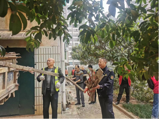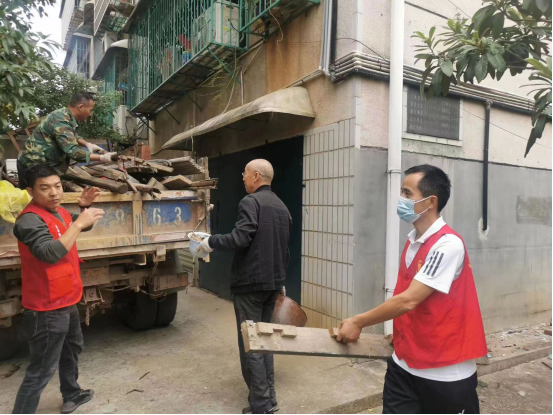 志愿者们盯紧社区主干道上居民随手堆放的废弃装修材料。根据楼栋分布,确定清运车运行路线。在队员们的通力合作下,半天时间就运送了三车大型杂物,被杂物挡住采光的底层老住户竖起大拇指点赞:“以前只有打开门才晓得桂花开了。现在打开窗子,香气一下子就拱到鼻子里来。要得,要得!。”