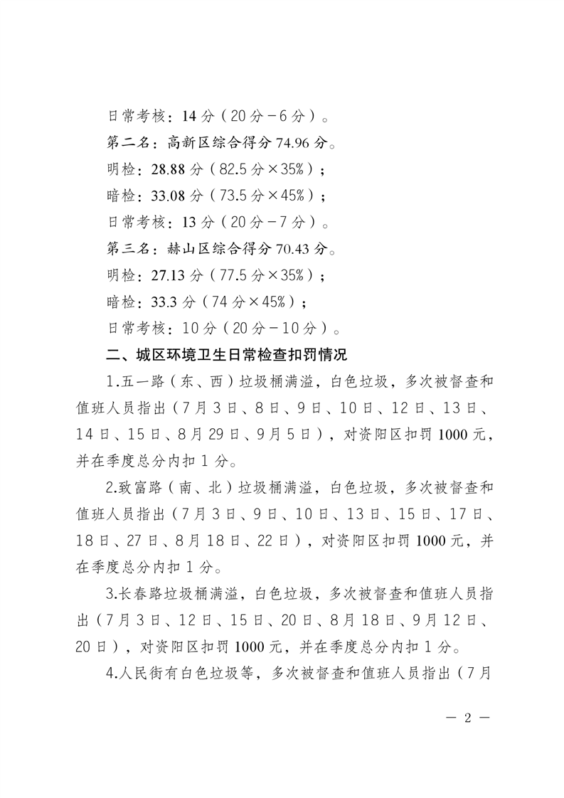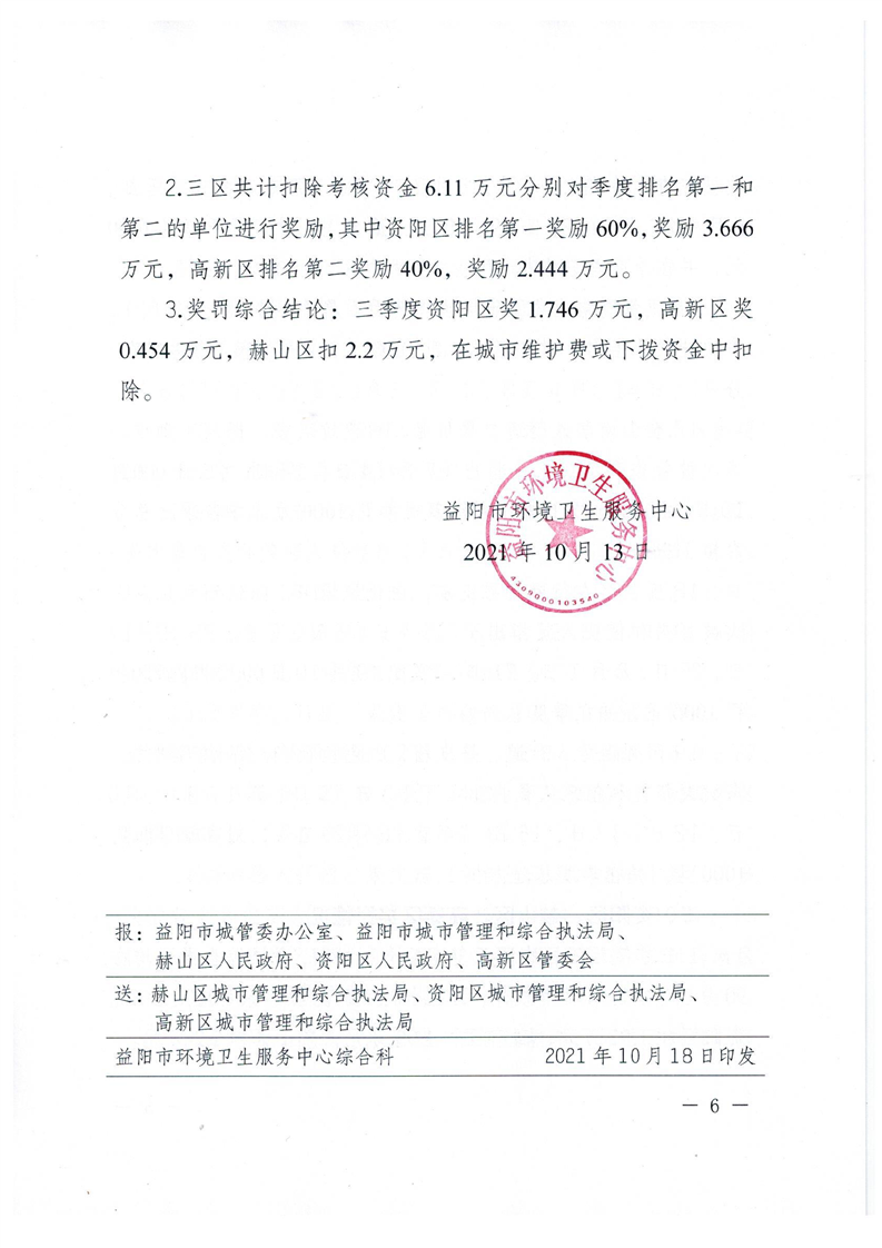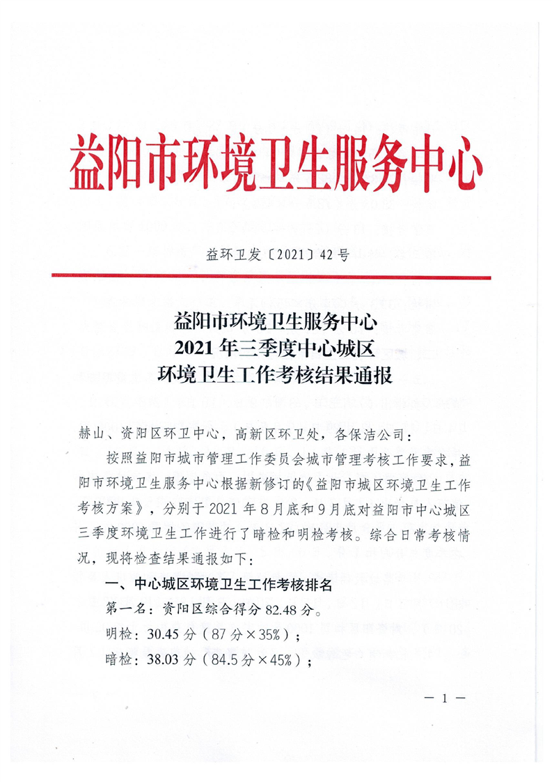 益阳市环境卫生服务中心2021年三季度中心城区环境卫生工作考核结果通报