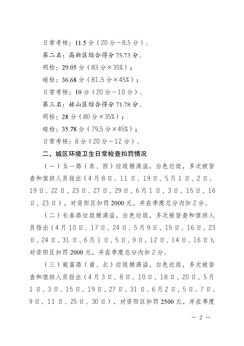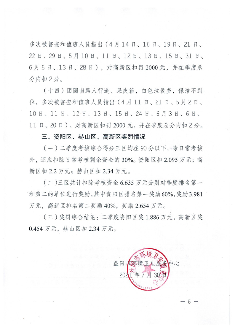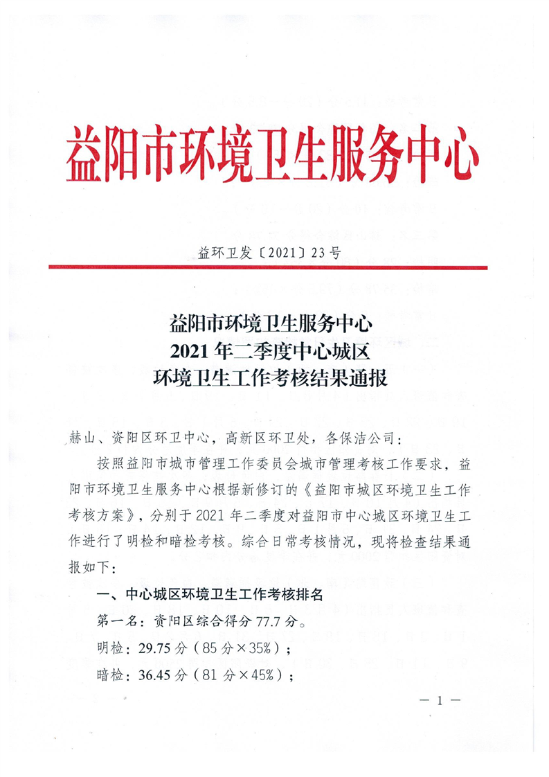 益阳市环境卫生服务中心2021年二季度中心城区环境卫生工作考核结果通报
