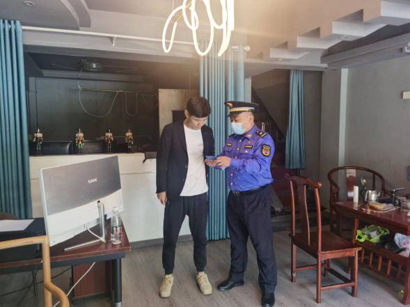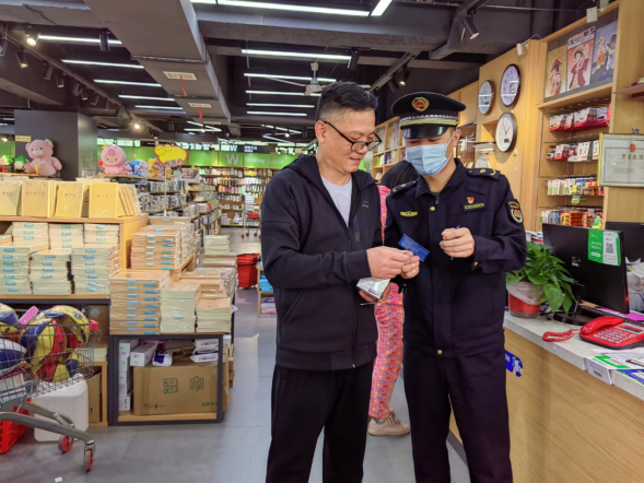 “您好,这是市城管执法局优化营商环境监督联系卡,如果您在生活、工作中遇到城市管理领域营商环境优化、行政执法扰民、工作作风不实、漠视群众诉求等方面任何问题都可以随时拨打局长热线与我们联系。”5月17日,市城管执法局资江风貌带管理执法大队队员正向沿街商家门店发放监督联系卡,并对门店经营业主宣传监督投诉渠道。