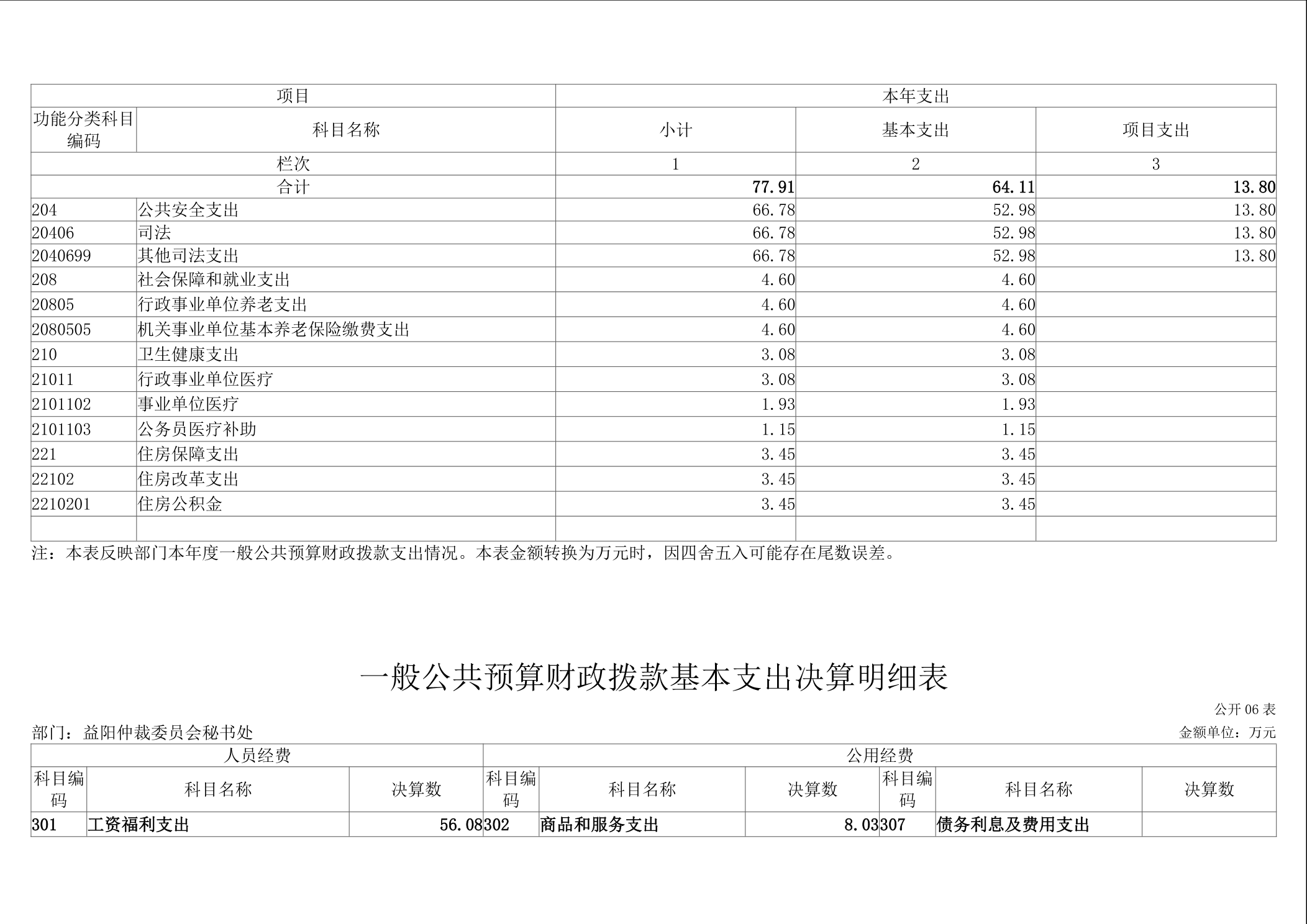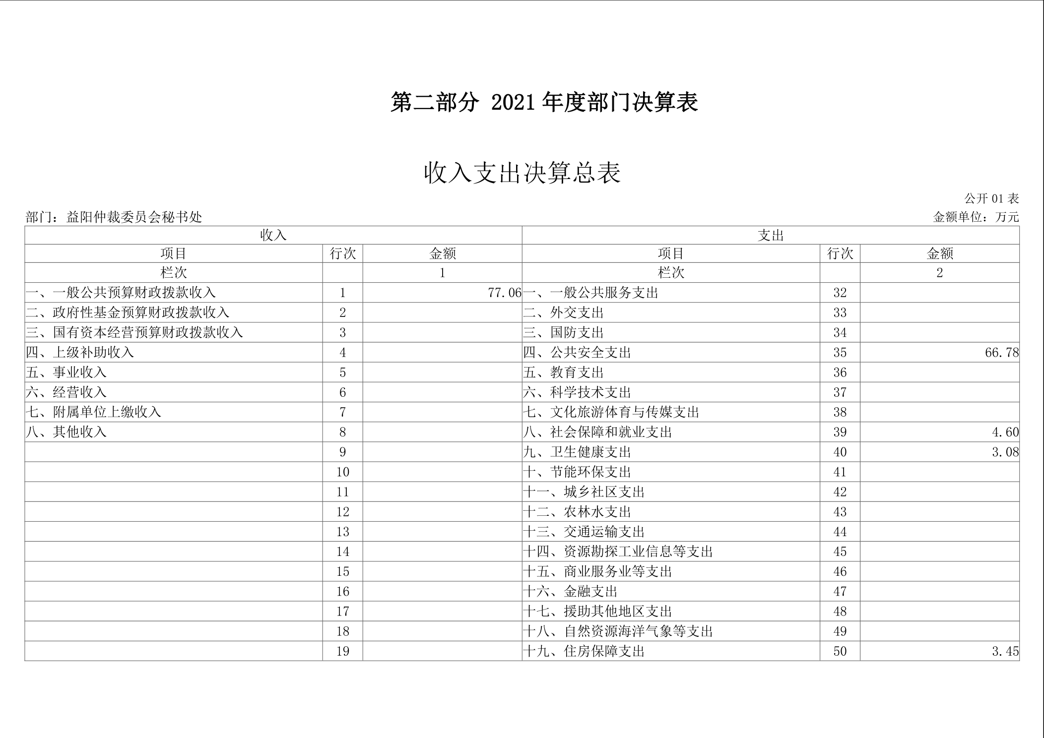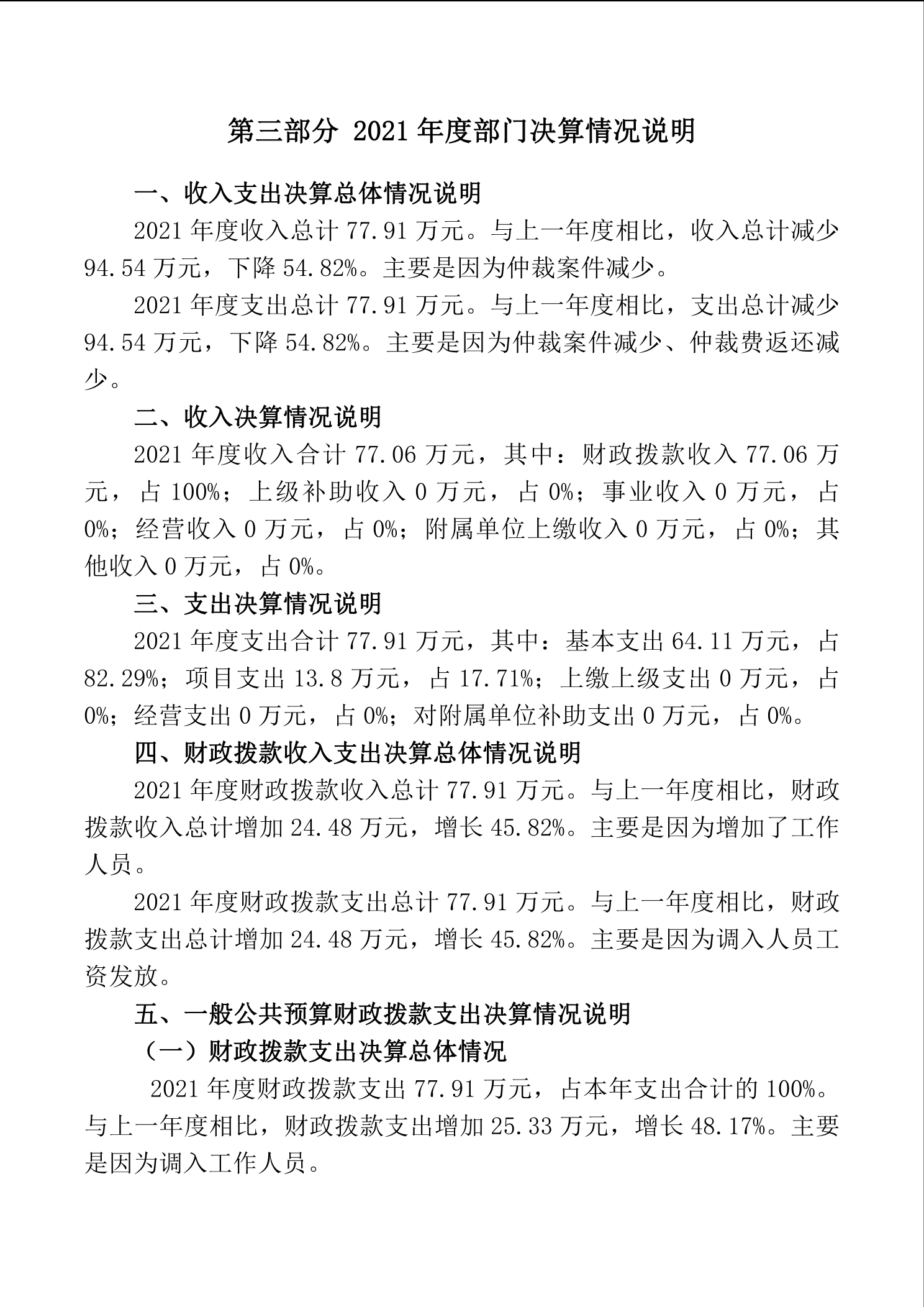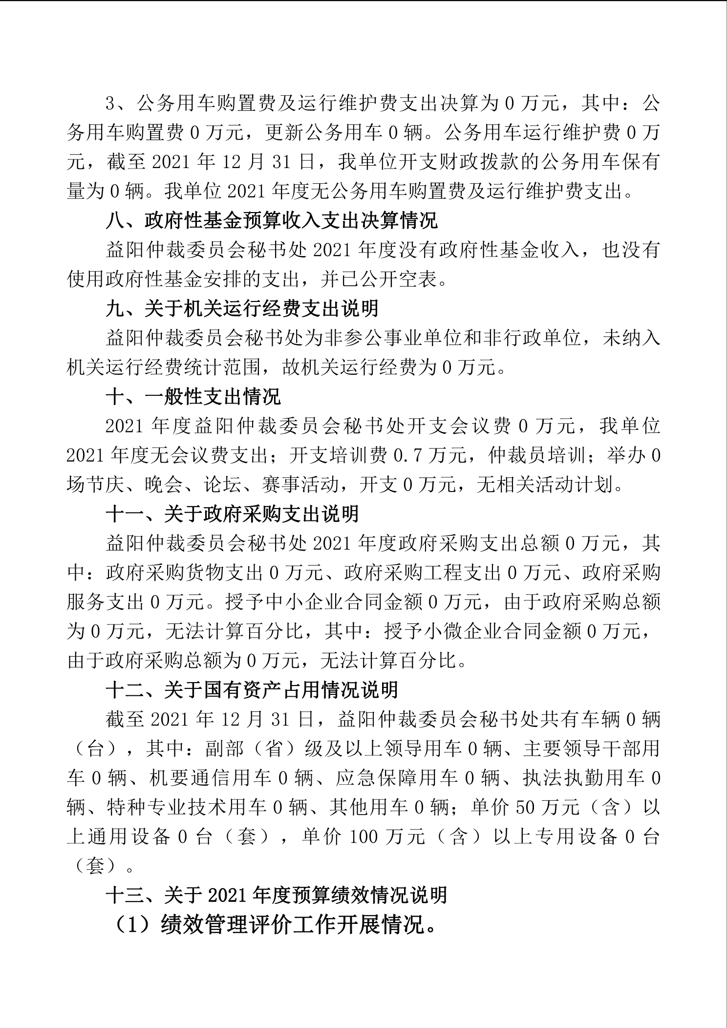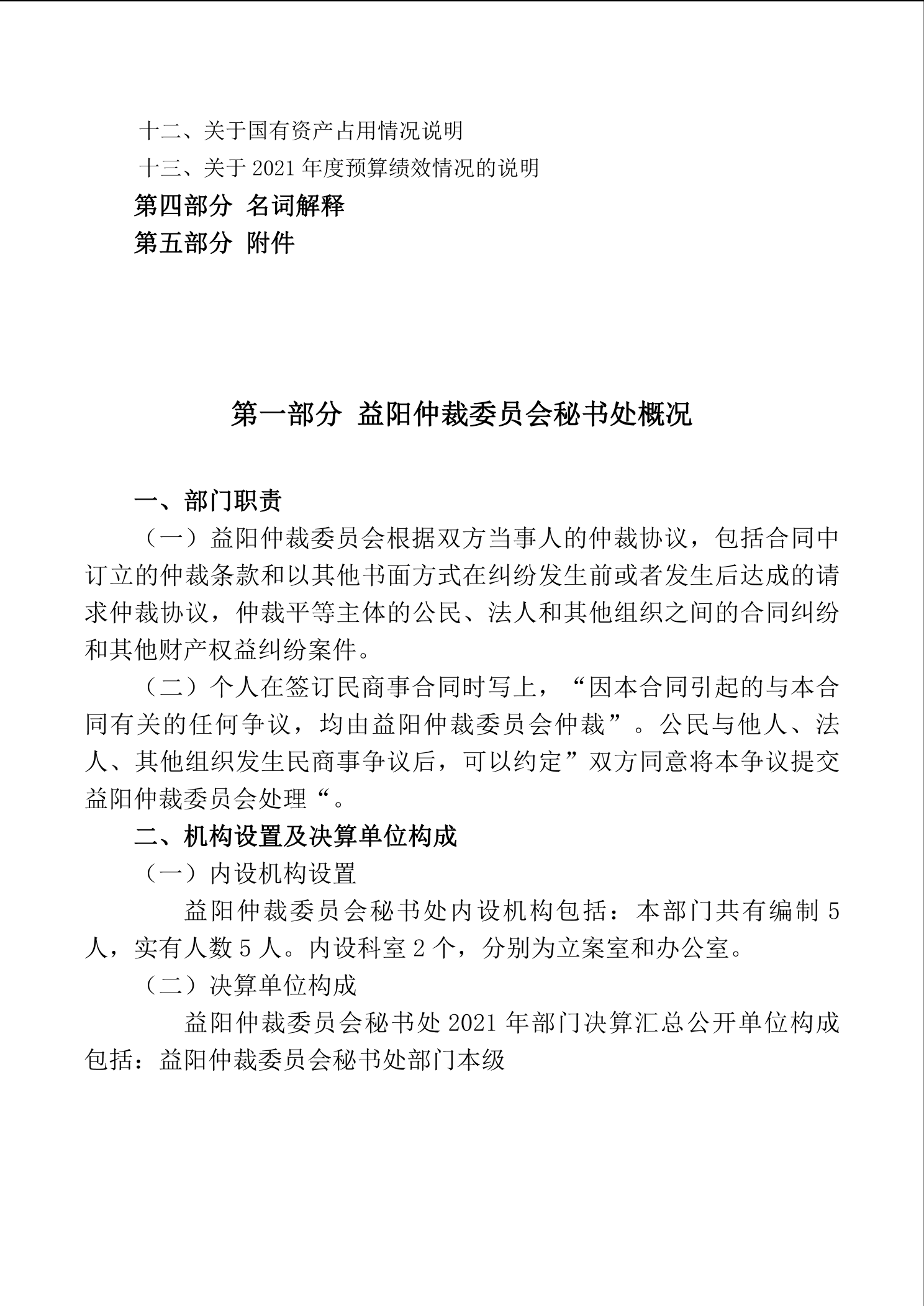 益阳仲裁委员会秘书处2021年部门决算公开说明