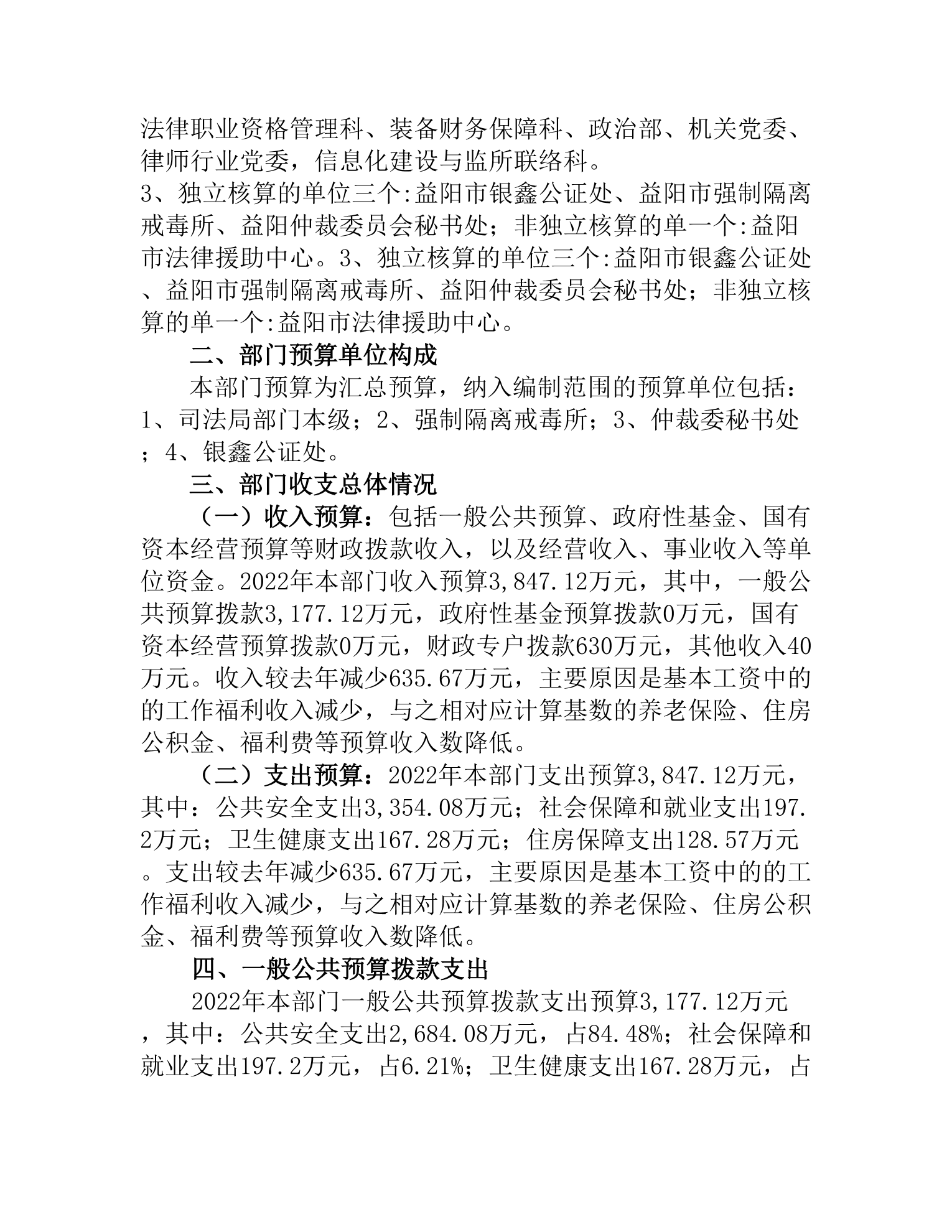 2022年度益阳市司法局(汇总)部门预算公开说明