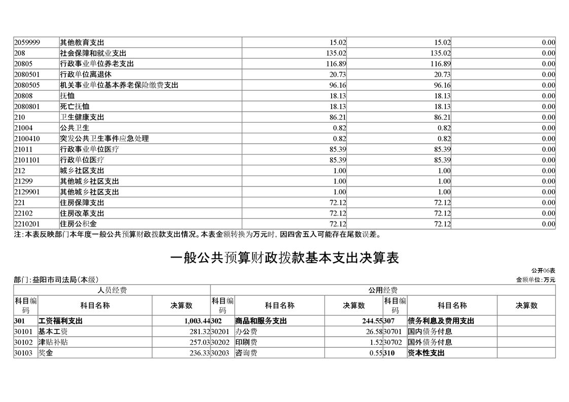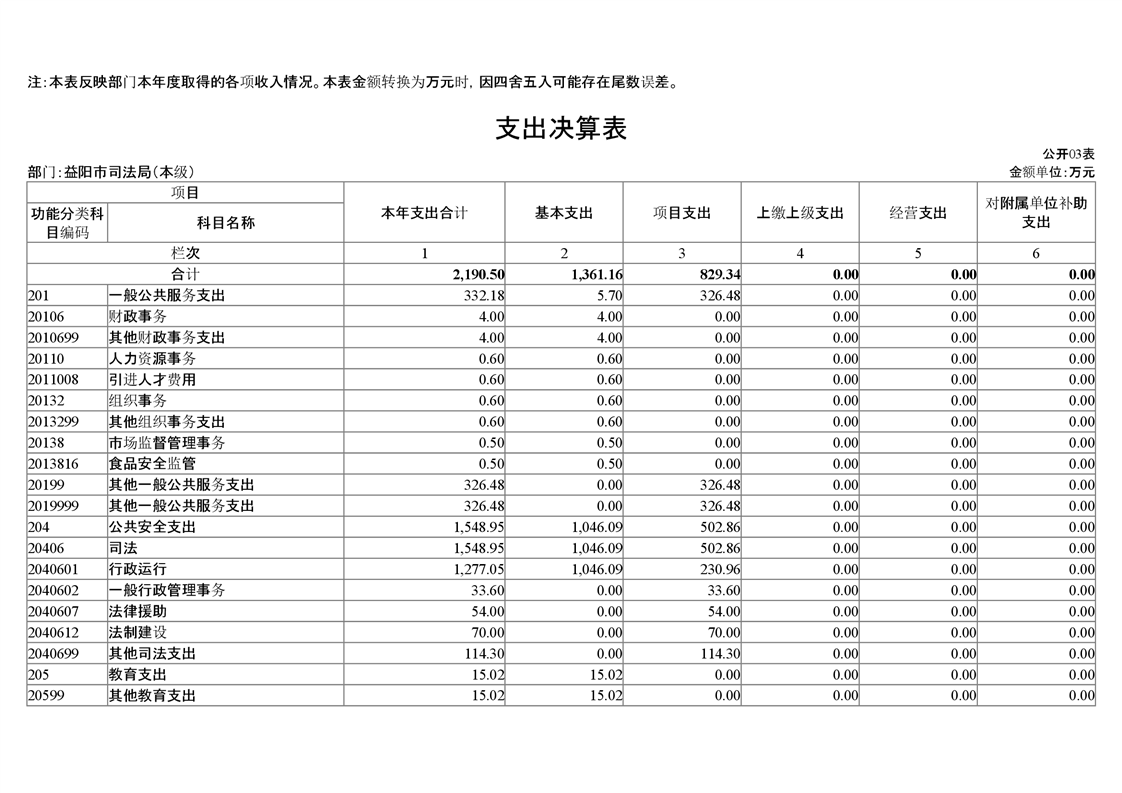 益阳市2021年部门预算批复表(预算科)_(0102601)市司法局机关.xls