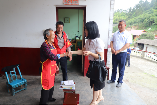 普法宣传志愿者进村入户宣传法治工作,向群众发放法治书籍
