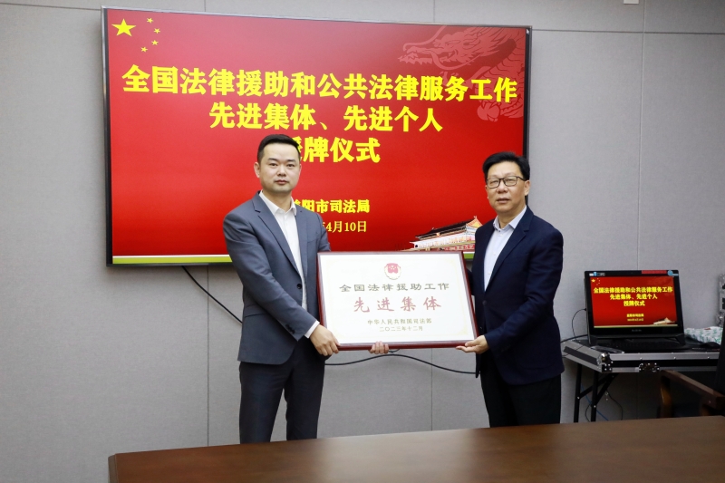 4月10日,市司法局受托为全国法律援助和公共法律服务工作先进集体、个人颁发荣誉证书及奖牌。
