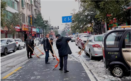 县城管执法局紧急调度各二级机构、执法中队170余人,全力以赴投入铲雪除冰和环境秩序巡查管控战斗,在桃江县城通往益阳市区的交通要道、县城各大街小巷、城区雷公岩等8座桥梁开展铲雪除冰及废弃物、生活垃圾清运等义务劳动;清退流动摊贩等路面障碍50多处,规范越门经营门店20多家;确保了每天的城市生活垃圾得到及时运送到益阳等地进行无害化处理,有效维护了城区环境秩序。县征拆事务中心全员出动,在县城38个复迁安置小区和本单位环境卫生责任区先后开展9个多小时义务劳动,确保了各小区居民的来往安全和公共环境的优良有序。