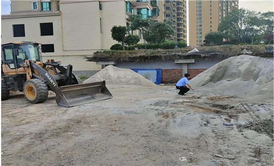 (图为工作人员根据雷达扫描结果对非法砂石堆场进行现场查处照片)