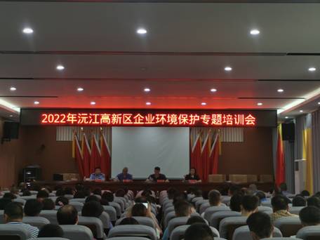 为深入打好污染防治攻坚战,全面开展防范化解重大生态环境风险隐患“利剑”行动,2022年6月16日上午,益阳市生态环境局沅江分局联合沅江高新区管委会集中对园区工业企业开展“送政策、解难题、优服务”生态环境保护专题培训。沅江分局副局长陈石忠、执法大队大队长何喆厚和沅江高新区管委会负责环保安全的相关工作人员参加会议。管委会副主任王雪主持,管委会主任彭龙参加会议并讲话,