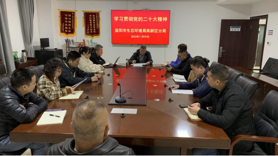 11月29日,益阳市生态环境局高新区分局组织召开学习贯彻党的二十大精神专题会议。专题学习党的二十大报告,并主要从全面领会党的二十大的主题及主要成果、新时代十年的伟大变革及里程碑意义、不断开辟马克思主义中国化时代化新境界、牢牢把握新时代新征程中国共产党的使命任务、贯彻落实新时代新征程的战略部署、用新的伟大奋斗创造新的伟业等方面进行深入解读。