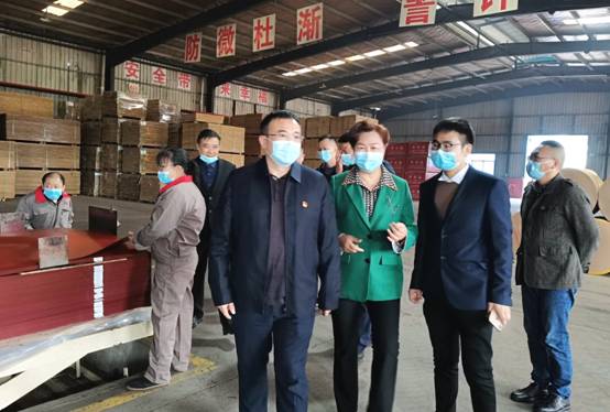 图为县委书记向荣在女企业家的创新创业基地进行调研
