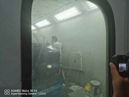 19时30分许,执法人员巡查至五福西路时发现,某汽修厂喷漆房正在进行喷漆作业,随即对该汽修厂进行检查,发现该汽修厂未开启配套建设的废气处理装置,应当安装的过滤棉未安装,涉嫌废气处理装置未保持正常使用。