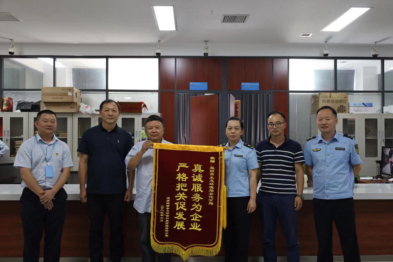 益阳日报全媒体讯(记者 李胜利 通讯员 刘力)6月26日,湖南湘核圣义环保科技有限责任公司负责人将一面印有“严格把关促发展 真诚服务为企业”的锦旗送到市生态环境局安化分局审批工作人员手中,感谢该局工作人员在项目环评审批过程中,为企业提供的一对一帮扶、审批材料修改完善的“环保管家”服务。