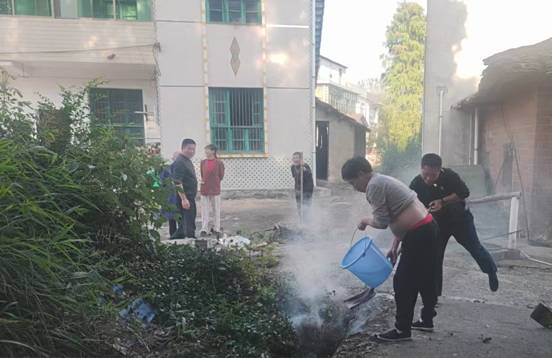 行动小组及时扑灭“城中村”露天秸秆焚烧火点