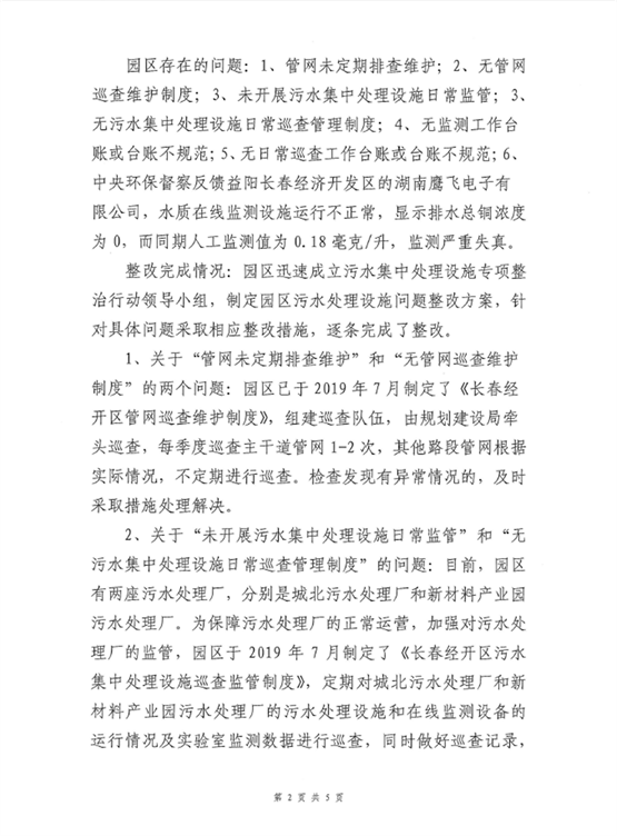 关于湖南省生态环境厅、湖南省发展和改革委员会交办的长春经开区2019年园区污水处理设施问题清单(第一批)和2020年园区污水处理设施夏季攻势问题销号情况公示