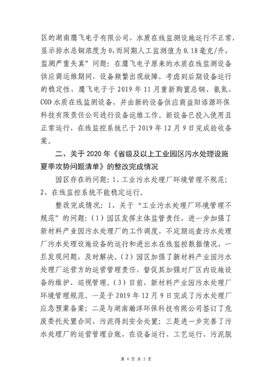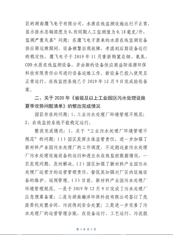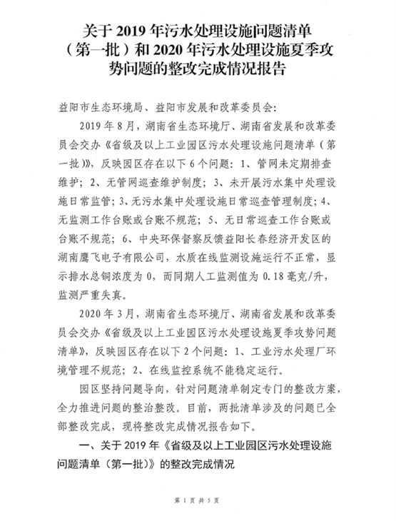 湖南省生态环境厅、湖南省发展和改革委员会交办的2019年园区污水处理设施问题清单(第一批)和2020年园区污水处理设施夏季攻势问题现已完成整改,按照湖南省生态环境厅、湖南省发展和改革委员会《关于做好产业园区污水处理设施问题排查整治销号和“一园一档”管理工作的通知》(湘环函[2020]39号)文件要求,园区管委会现将整改问题完成情况进行公示。