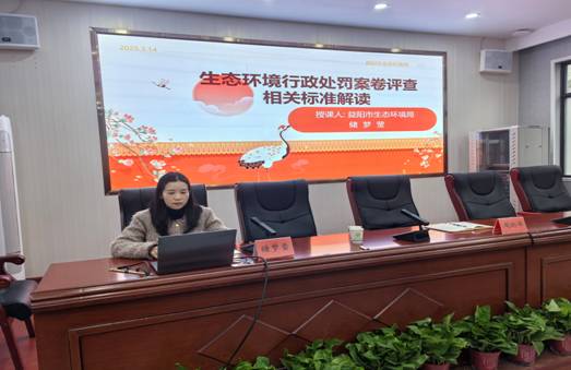 随后,储梦莹就“生态环境行政处罚案卷评查标准”进行了专题授课,详细解读了生态环境领域案卷评查的标准、程序和方法,并结合历年来全市生态环境系统案件办理实例,一一点出了其中的疑难点、易错点,着重分析了案卷评查中常见的问题和注意事项。