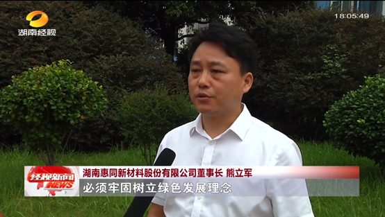 湖南惠同新材料股份有限公司董事长熊立军:“习近平总书记的重要讲话让我们企业深刻认识到,必须牢固树立绿色发展理念,加强标准化管理和技术创新,强化污染源头治理,坚定不移地走绿色循环发展之路,努力实现生态环境保护与企业自身发展的双赢局面。”