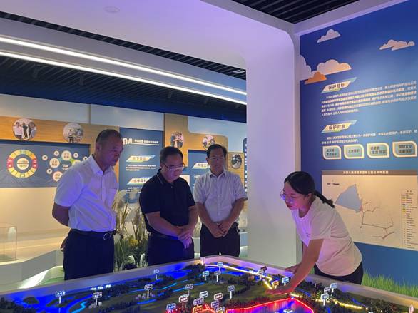 肖祥清先后前往千山红镇、大通湖区水生植物产业示范园、金盆节制闸、老河口村大嘴巴基地、大新河入湖口等地,实地察看了千山红镇调蓄湖水产养殖尾水治理项目、大通湖区南部水系连通工程建设项目、“水草+”生态绿色发展产业链、大新河入湖口人工湿地项目建设等情况,乘船考察了大湖水环境治理及生态修复情况,参观了大通湖大闸蟹协会和湿地生态保护湖南省科普基地。