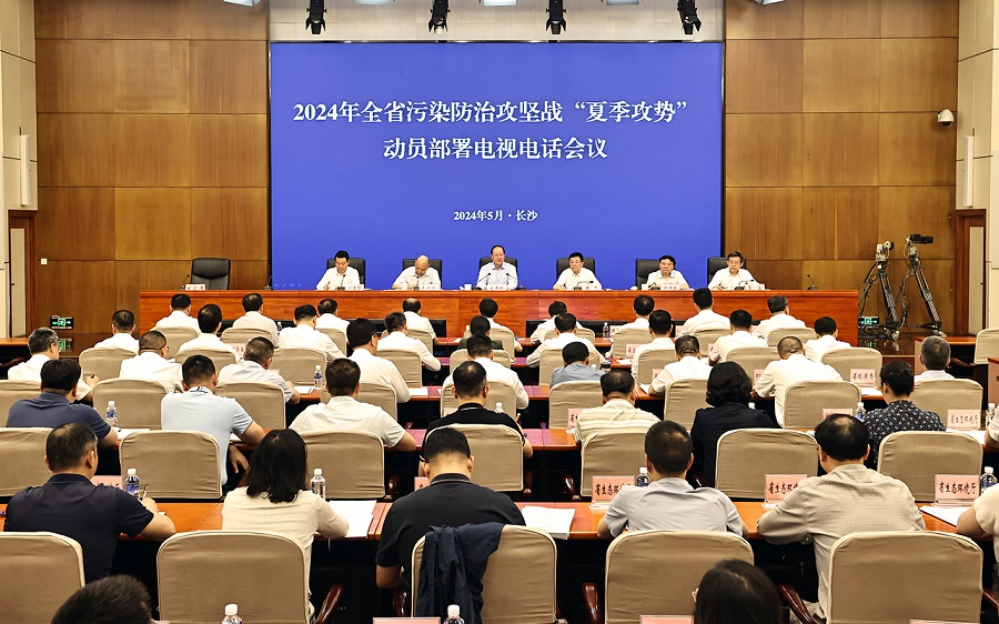 5月30日上午,2024年全省污染防治攻坚战“夏季攻势”动员部署电视电话会在长沙召开。省委副书记、省长毛伟明强调,要深入贯彻习近平生态文明思想,保持持续攻坚势头不松劲,以最坚决的态度、最有力的措施,确保“夏季攻势”各项任务落地见效,守护好三湘大地的青山绿水、蓝天净土。