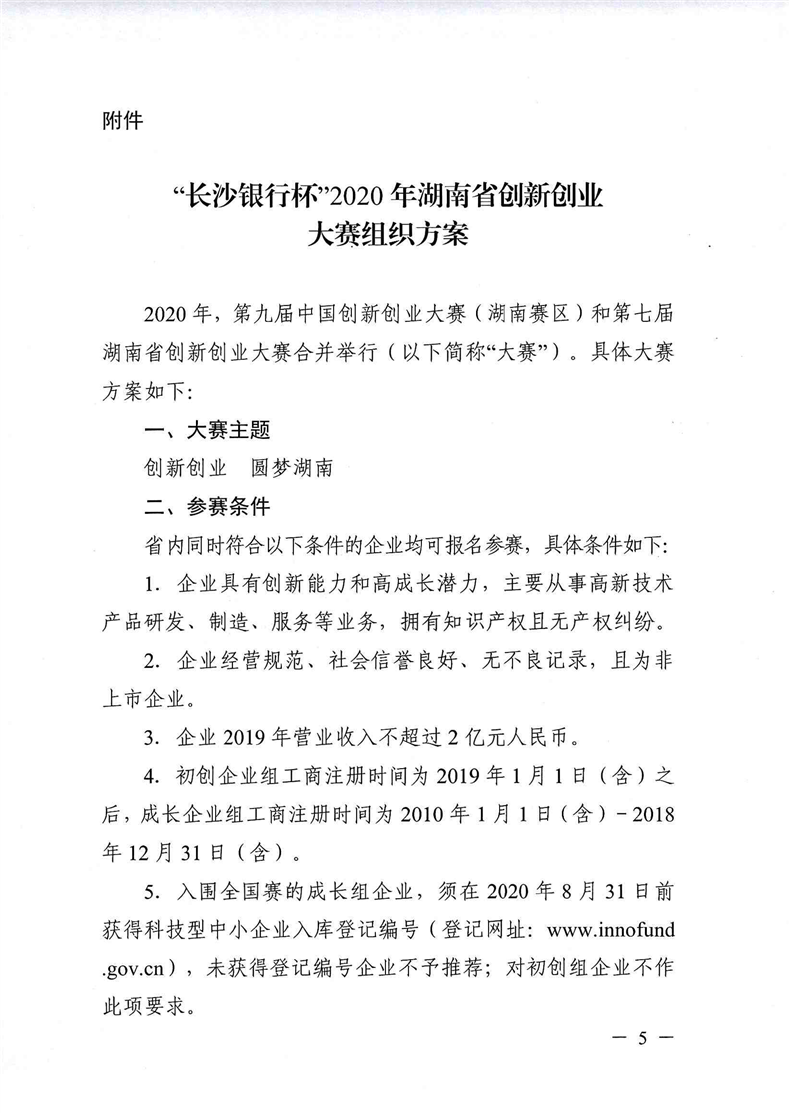 关于举办“长沙银行杯”2020年湖南省创新创业大赛的通知