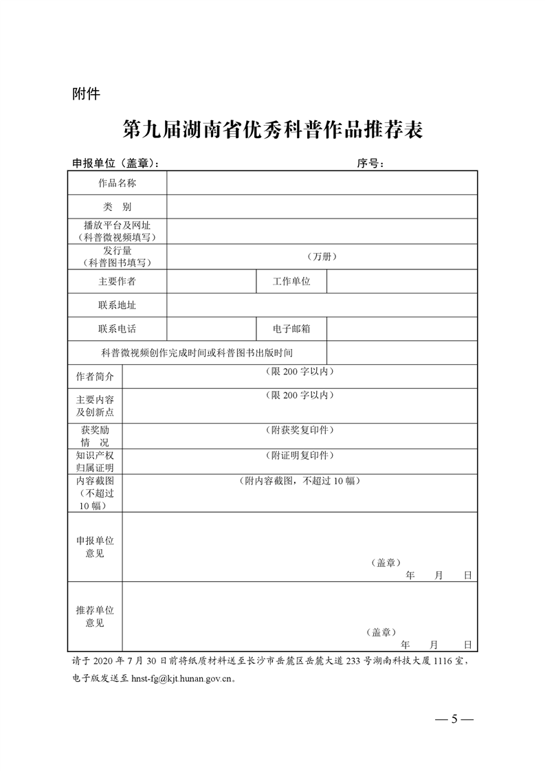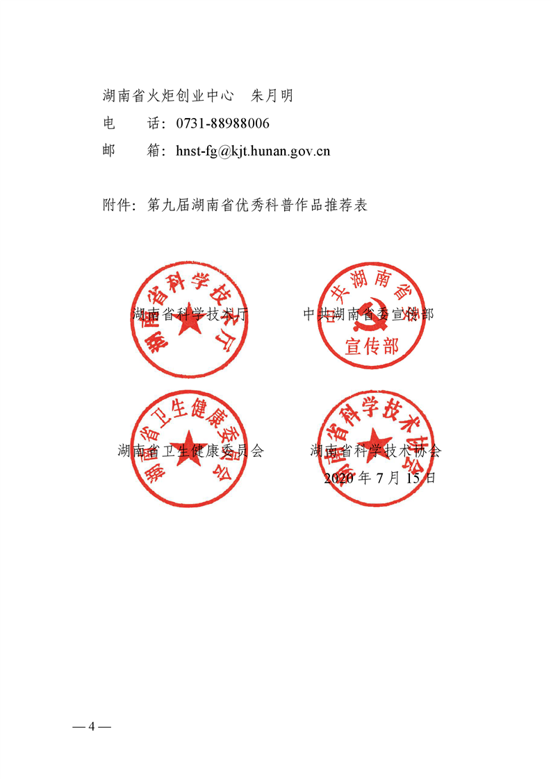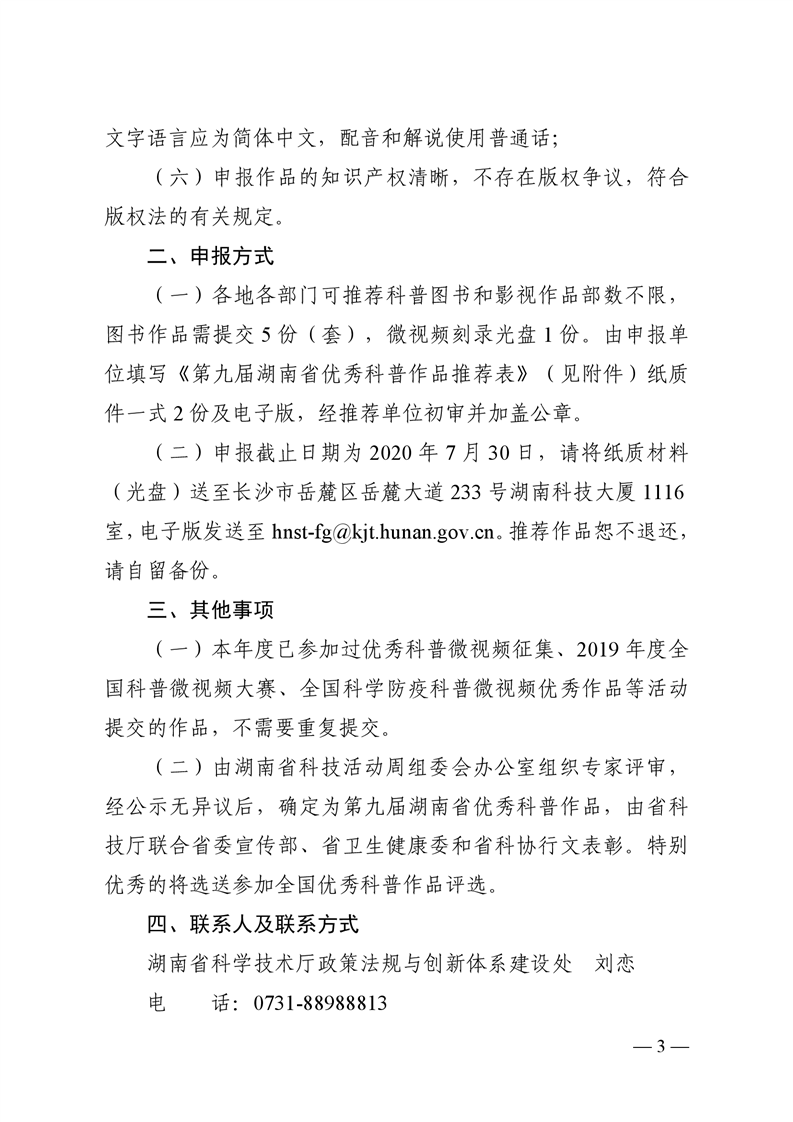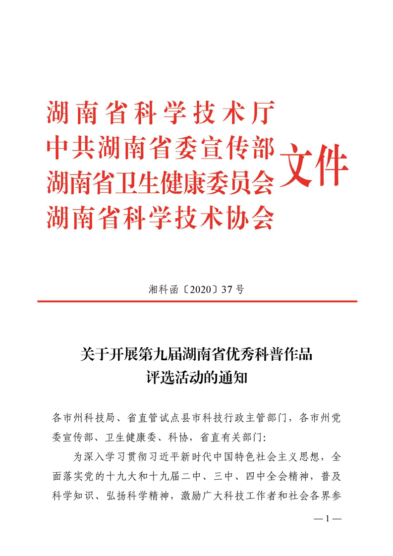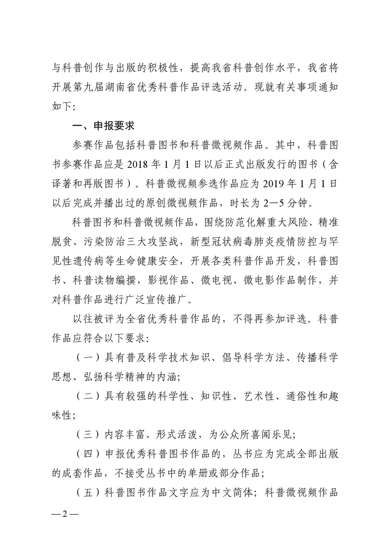 关于开展第九届湖南省优秀科普作品评选活动的通知