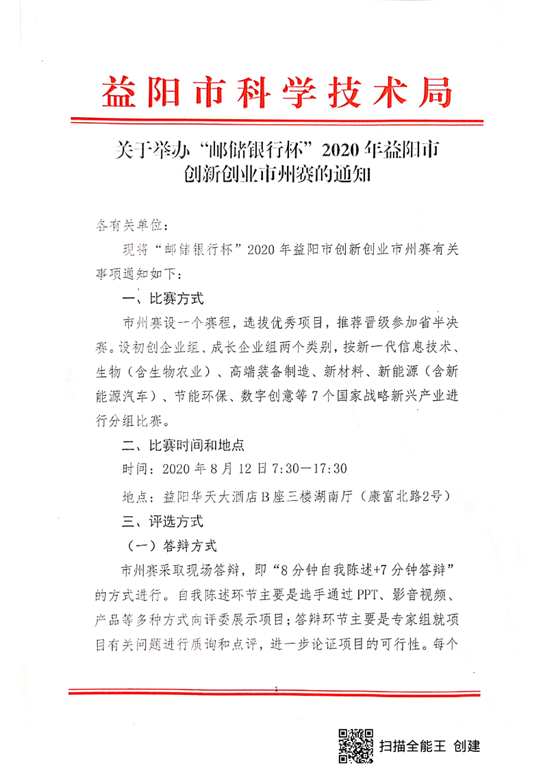 关于举办“邮储银行杯”2020年益阳市创新创业市州赛的通知