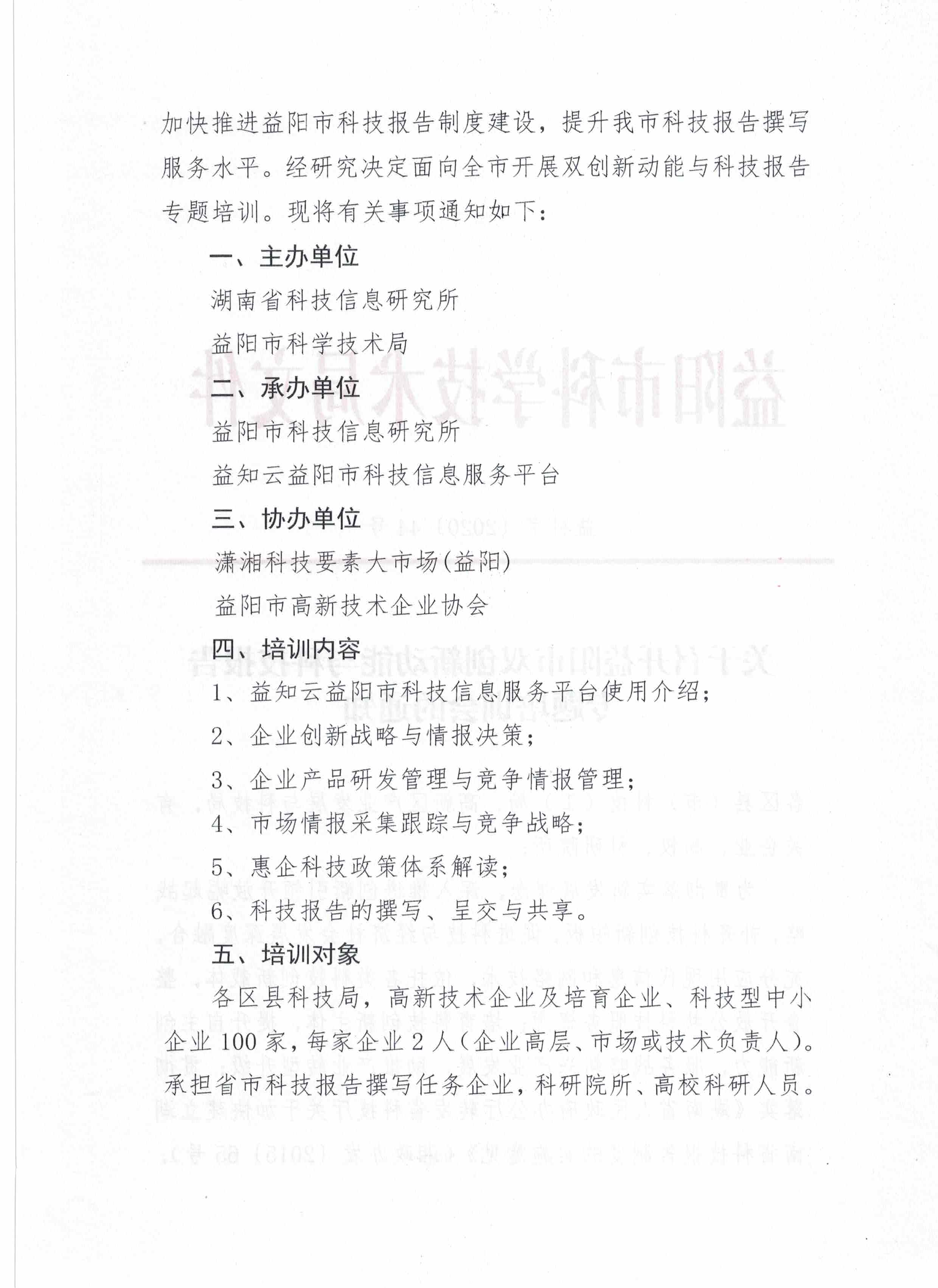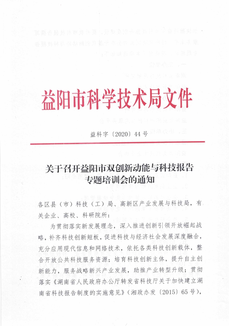 | 关于召开益阳市双创新动能与科技报告专题培训会的通知 |