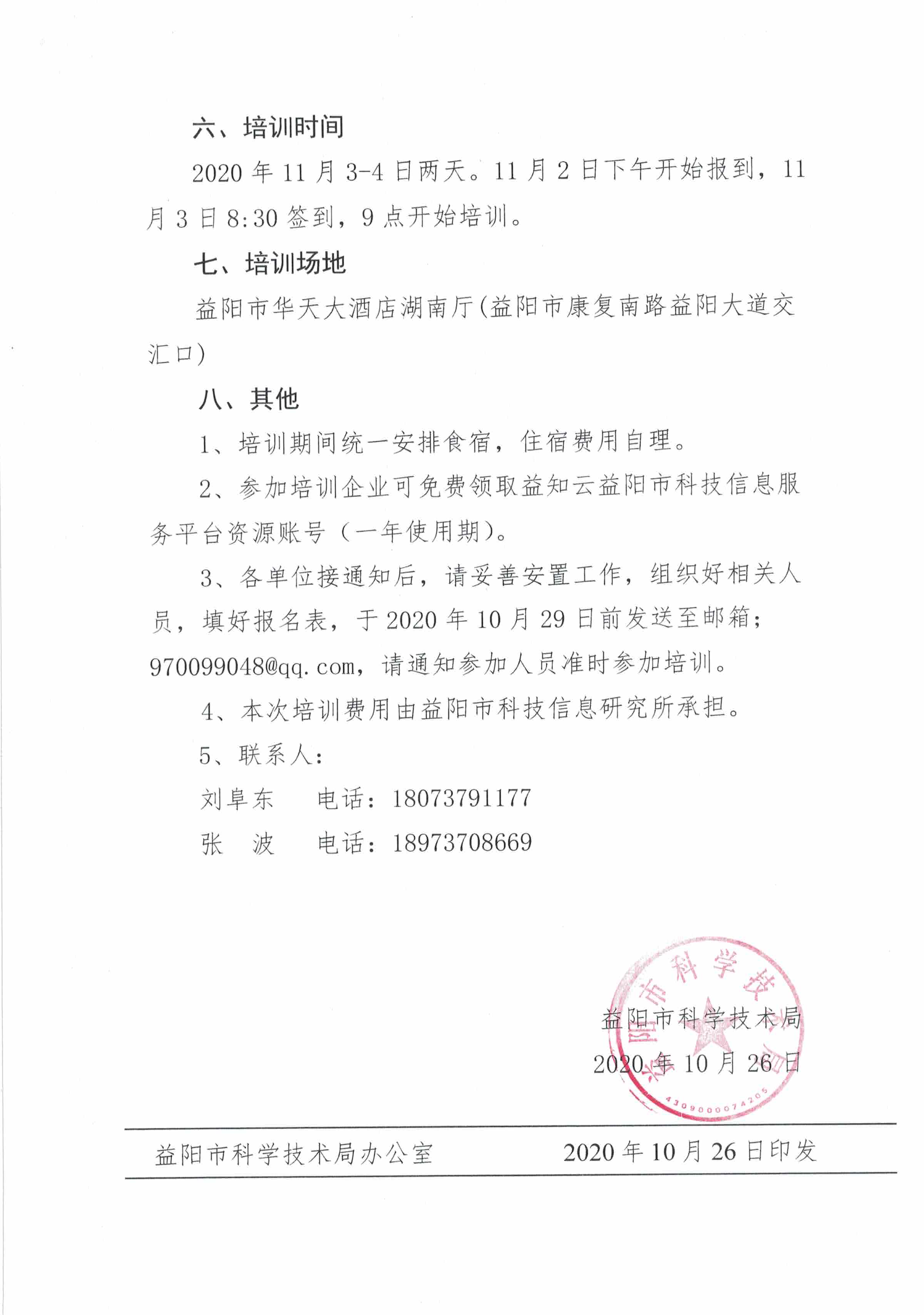 益科字〔2020〕44号 各区县(市)科技(工)局、高新区产业发展与科技局,有关企业、高校、科研院所: 为贯彻落实新发展理念,深入推进创新引领开放崛起战略,补齐科技创新短板,促进科技与经济社会发展深度融合,充分应用现代信息和网络技术,依托各类科技创新载体,整合开放公共科技服务资源;培育科技创新主体,提升自主创新能力,服务战略性新兴产业发展,助推产业转型升级;贯彻落实《湖南省人民政府办公厅转发省科技厅关于加快建立湖南省科技报告制度的实施意见》(湘政办发〔2015〕65号),加快推进益阳市科技报告制度建设,提升我市科技报告撰写服务水平。经研究决定面向全市开展双创新动能与科技报告专题培训。现将有关事项通知如下: 一、主办单位 湖南省科技信息研究所 益阳市科学技术局 二、承办单位 益阳市科技信息研究所 益知云益阳市科技信息服务平台 三、协办单位 潇湘科技要素大市场(益阳) 益阳市高新技术企业协会 四、培训内容 1、益知云益阳市科技信息服务平台使用介绍; 2、企业创新战略与情报决策; 3、企业产品研发管理与竞争情报管理; 4、市场情报采集跟踪与竞争战略; 5、惠企科技政策体系解读; 6、科技报告的撰写、呈交与共享。 五、培训对象 各区县科技局,高新技术企业及培育企业、科技型中小企业100家,每家企业2人(企业高层、市场或技术负责人)。承担省市科技报告撰写任务企业,科研院所、高校科研人员。 六、培训时间 2020年11月3-4日两天。11月2日下午开始报到,11月3日8:30签到,9点开始培训。 七、培训场地 益阳市华天大酒店湖南厅(益阳市康复南路益阳大道交汇口) 八、其他 1、培训期间统一安排食宿,住宿费用自理。 2、参加培训企业可免费领取益知云益阳市科技信息服务平台资源账号(一年使用期)。 3、各单位接通知后,请妥善安置工作,组织好相关人员,填好报名表,于2020年10月29日前发送至邮箱;970099048@qq.com,请通知参加人员准时参加培训。 4、本次培训费用由益阳市科技信息研究所承担。 5、联系人: 刘阜东 电话:18073791177 张 波 电话:18973708669 益阳市科学技术局 2020年10月26日 附件: |