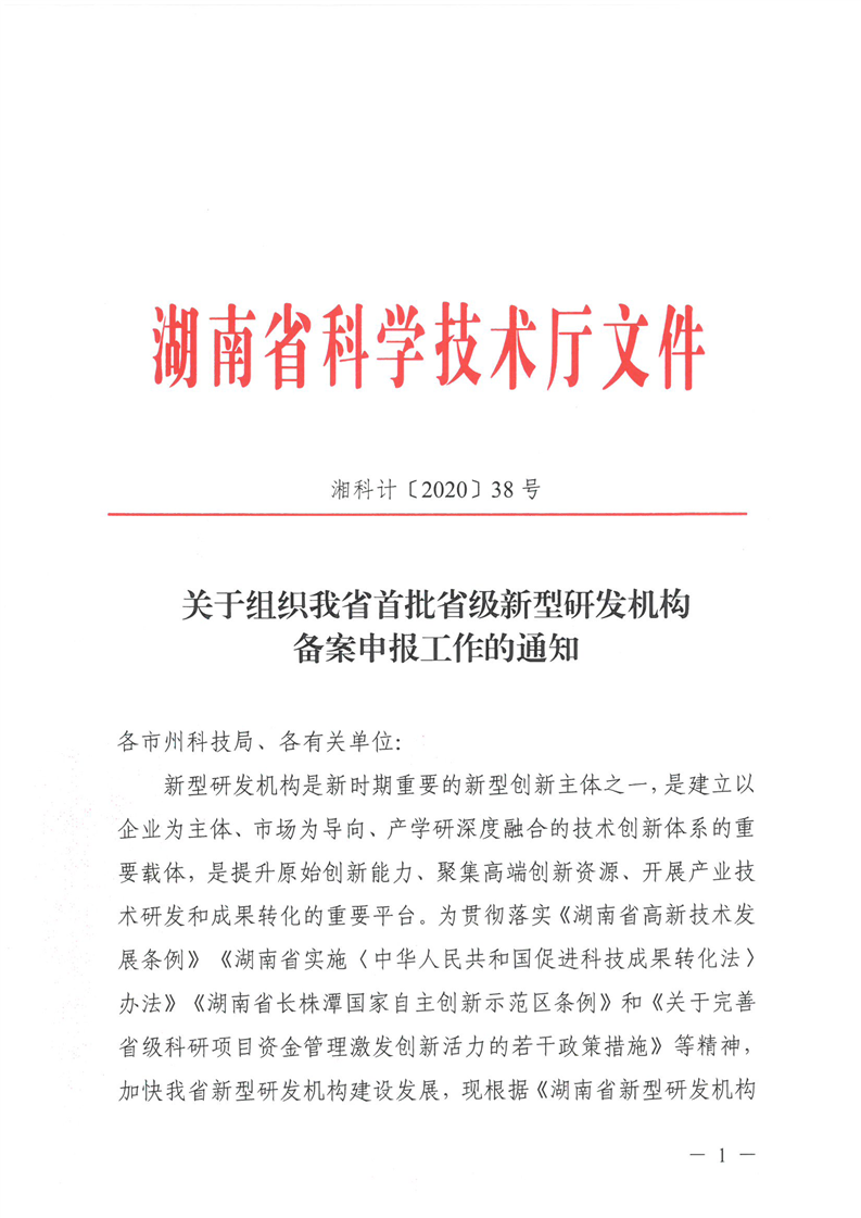 关于组织我省首批省级新型研发机构备案申报工作的通知