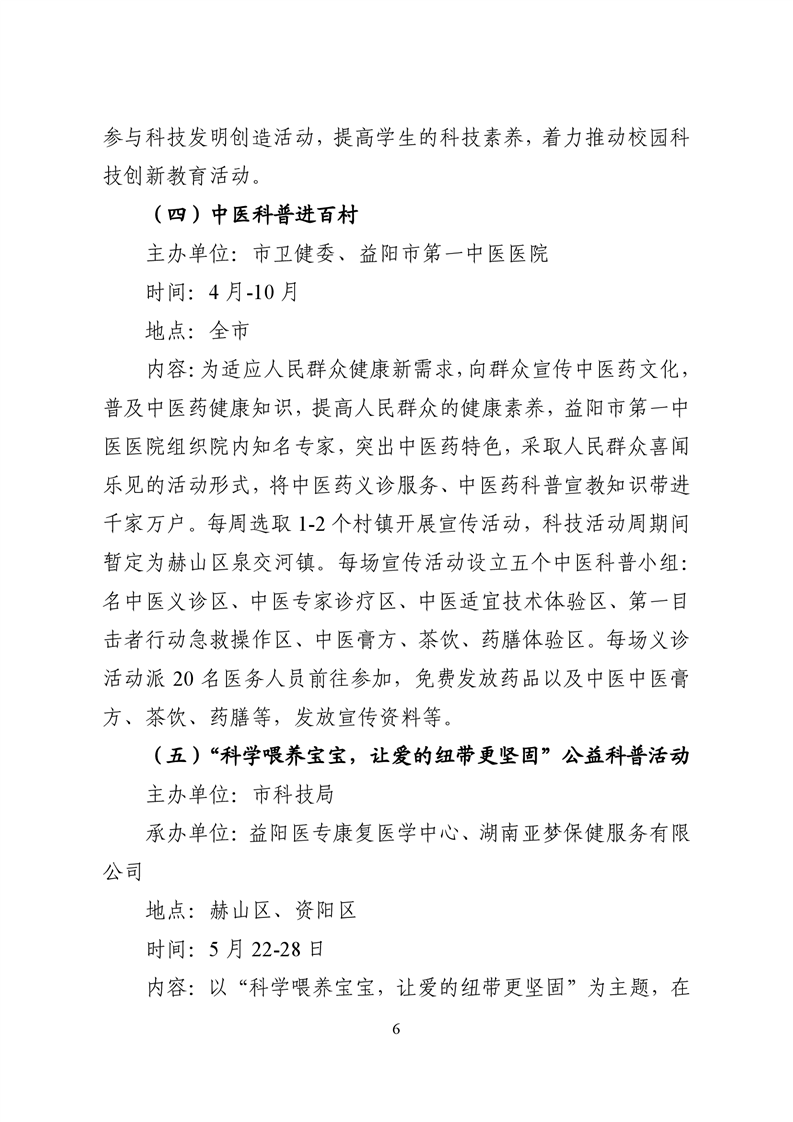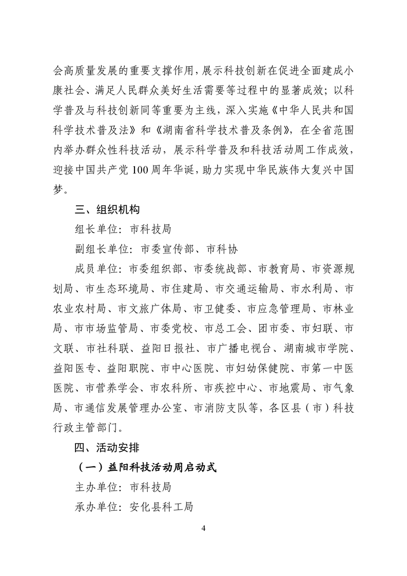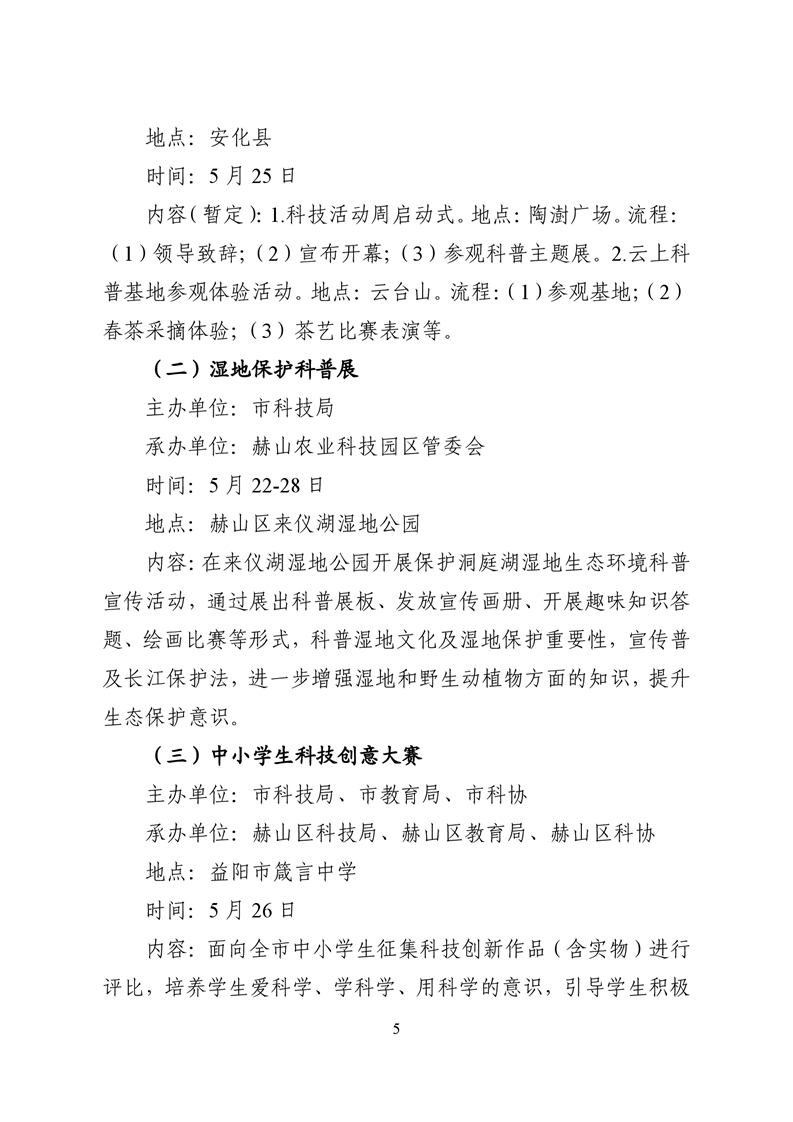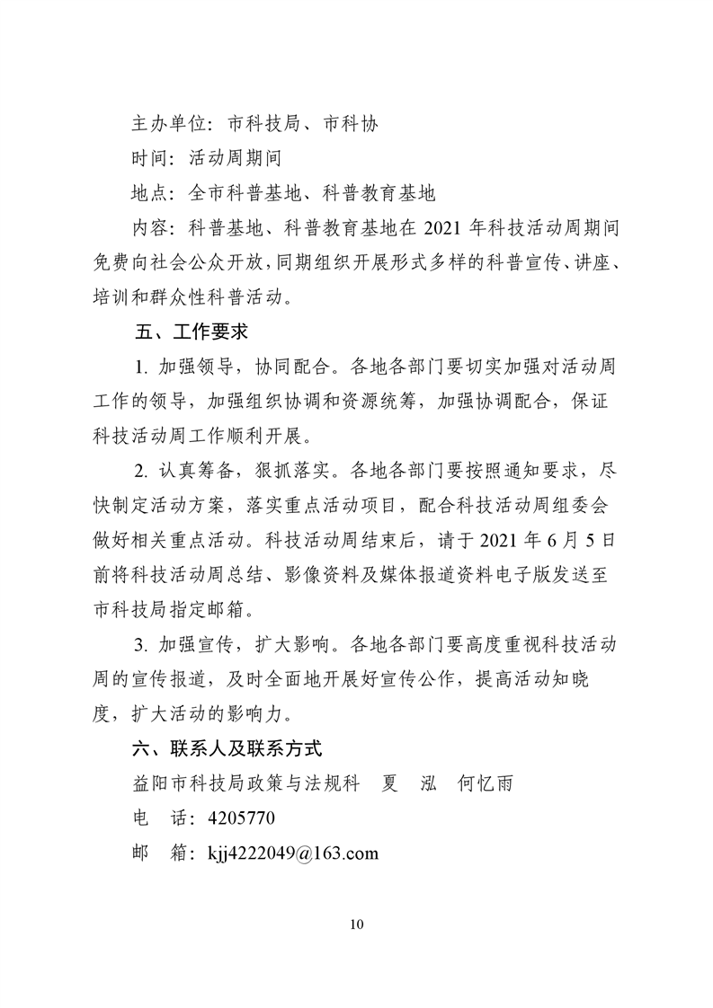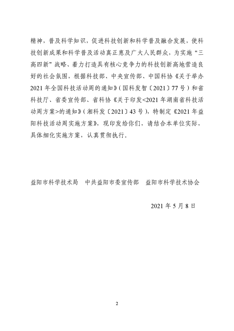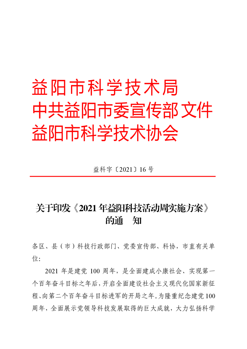 关于印发《2021年益阳科技活动周实施方案》的通知