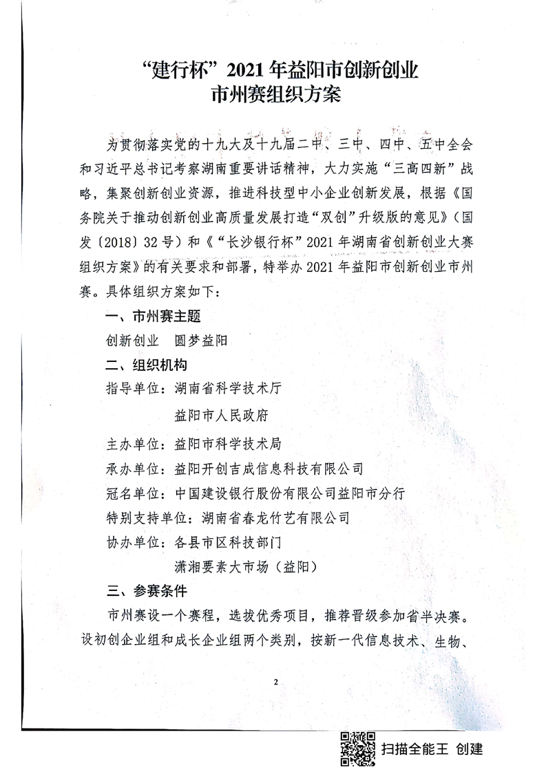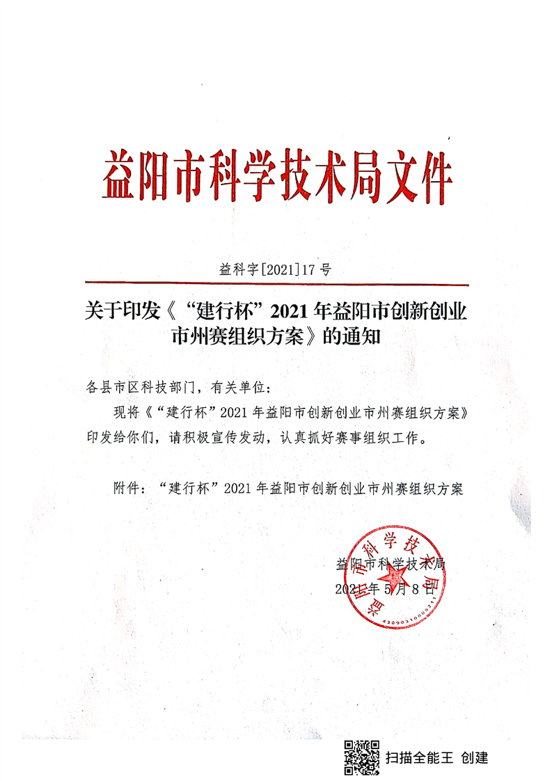 关于印发《“建行杯”2021年益阳市创新创业市州赛组织方案》的通知