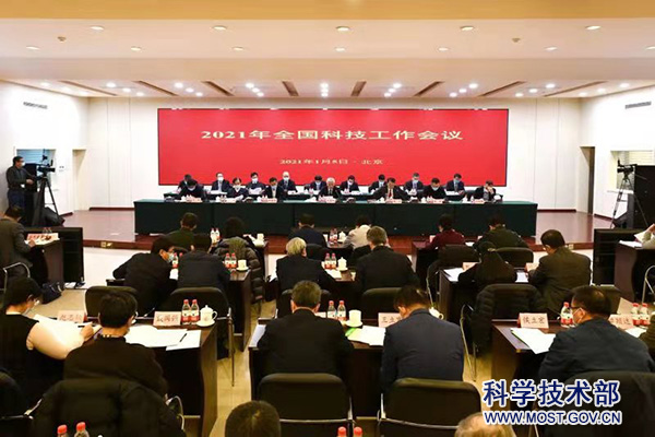 1月5日,2021年全国科技工作会议在京召开。会议深入学习贯彻习近平新时代中国特色社会主义思想,全面贯彻党的十九大和十九届二中、三中、四中、五中全会精神,认真落实中央经济工作会议和中央农村工作会议精神,深入贯彻落实习近平总书记关于科技创新的重要论述和系列重要指示批示精神,坚持和加强党对科技工作的全面领导,坚持创新在我国现代化建设全局中的核心地位,把科技自立自强作为国家发展的战略支撑,深入实施创新驱动发展战略,总结2020年和“十三五”科技工作,部署2021年重点任务,为“十四五”和中长期科技发展开好局、起好步。科技部党组书记、部长王志刚作工作报告,科技部党组成员、副部长黄卫主持会议。 王志刚在工作报告中指出,2020年是全面建成小康社会的决胜之年,是迈进创新型国家行列的冲刺之年,是“十三五”收官和“十四五”谋划的关键之年,也是应对新冠肺炎疫情等重大挑战的应急科技攻坚之年。面对错综复杂的国内外形势,以习近平同志为核心的党中央作出一系列新的重大决策部署。在党中央坚强领导下,全国科技界坚持以习近平新时代中国特色社会主义思想为指导,深入落实新发展理念,坚定实施创新驱动发展战略,推动科技创新取得新进展。一是围绕保障人民生命健康加强疫情防控科研攻关,在药物、疫苗、检测试剂等领域取得一批务实管用成果,有力支撑全国疫情防控。二是加快关键核心技术攻关和实施重大科技任务,加强“从0到1”基础研究,建设13个国家应用数学中心,全面开展重大专项任务攻坚冲刺,一批前沿领域重大科技项目加快实施。启动建设京津冀、长三角、粤港澳国家技术创新中心。三是面向长远发展加强科技创新系统谋划,按照国家“十四五”总体部署,研究编制“十四五”国家科技创新规划,加强重点任务凝练,完善科技规划体系布局。四是聚焦复工复产和高质量发展发挥科技创新支撑作用,实施“科技助力经济2020”重点专项,开展成果转化“百城百园”行动。深入实施科技扶贫“百千万”工程,助力打赢脱贫攻坚战、污染防治攻坚战。五是加大重点领域改革力度,开展科技体制改革总结评估,修订国家科学技术奖励条例,开展基于信任的科学家负责制、“揭榜挂帅”、经费使用“包干制”等科研项目管理改革试点,开展赋予科研人员职务科技成果所有权或长期使用权试点。实施减轻科研人员负担、激发创新活力专项行动,围绕优化创新生态加强作风学风建设,出台破除“唯论文”不良导向硬措施,构建科技大监督格局,严肃查处一批科研不端行为并及时向社会公开。六是扎实推进国际科技合作和人才交流,务实开展对美科技交流合作,联合制定中欧科研创新合作路线图,举办中俄科技创新年,召开第二届中国—拉美和加勒比国家科技创新论坛。支持在脑科学等领域发起大科学计划。深入实施“一带一路”科技创新行动计划,建设19家联合实验室,基本建成一体化技术转移网络。 王志刚指出,“十三五”时期,我国科技事业加速发展,创新体系更加健全,创新环境不断优化,创新能力显著增强,创新治理形成新格局,科技实力跃上新的大台阶,在促进高质量发展和全面建成小康社会中进一步凸显了支撑引领作用。全社会研发经费支出从2015年1.42万亿元增长到2019年2.21万亿元,2019年研发投入强度达到2.23%。基础研究经费增长近一倍,2019年达到1336亿元。技术市场合同成交额翻一番,2019年超过2.2万亿元。世界知识产权组织发布的全球创新指数显示,我国排名从2015年第29位跃升至第14位。一是基础研究和应用基础研究显著加强,数学等基础科学稳定支持加大。自然科学基金改革全面推进,更加注重原创和人才培养。在量子信息、铁基超导、干细胞、合成生物学等方面取得一批重大原创成果。二是关键核心技术加快突破,“天问一号”开启火星探测,“嫦娥四号”首次登陆月球背面,“嫦娥五号”实现地外天体采样,“奋斗者”号完成万米载人深潜,C919首飞成功,“雪龙二号”首航南极,“天鲲号”首次试航。时速600公里高速磁悬浮试验样车下线。悟空、墨子、碳卫星等科学实验卫星成功发射,磁约束核聚变大科学装置多项实验取得突破,散裂中子源、500米口径球面射电望远镜等建成使用。三是重大专项引领重点领域跨越发展,国产芯片、操作系统和计算机整机自主保障能力进一步提升,5G成功商用;一批高端机床装备研制成功;掌握第三代非能动核电技术,高温气冷堆世界领先;自主研发235个新药。四是科技创新推动产业转型升级,新能源汽车、新型显示跻身世界前列,北斗导航卫星全球组网,人工智能等技术快速应用。科技为港珠澳大桥、高速铁路等重大工程提供保障。五是科技创新有力支撑民生改善,科技扶贫取得显著成效,实现科技特派员对建档立卡贫困村科技服务和创业带动全覆盖。建成50家国家临床医学研究中心牵头、9700家医疗机构参与的新型协同创新网络。重点区域大气污染联防联控深入推进。六是区域创新水平快速提升,北京、上海、粤港澳国际科技创新中心加快建设,东西部科技合作由“点对点支援”向“体系化布局”转变。21家国家自创区、169家国家高新区成为地方创新发展“领头雁”,2019年营业收入达38.6万亿元,比2015年增长52%。七是科技创新创业形成新生态,创新创业政策更加健全,科创