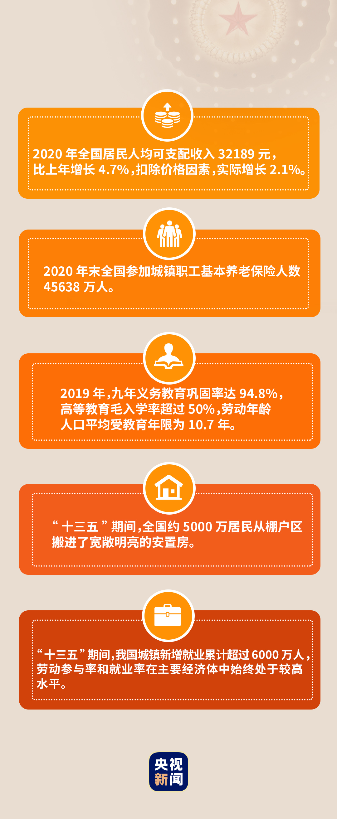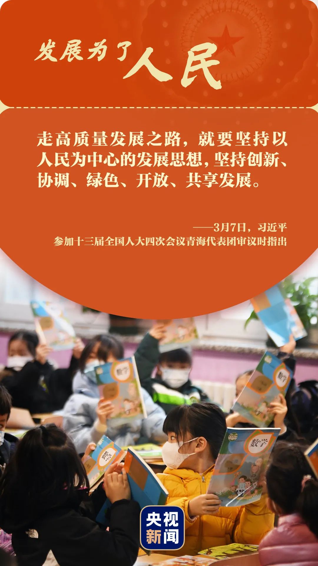 人民,在习近平总书记心中重千钧。今年全国两会,下团组参加审议、讨论,总书记多次提及“人民”二字。 3月5日,在内蒙古代表团,总书记指出要“坚定不移为中国人民谋幸福”。 3月6日,在医药卫生界、教育界委员联组会上,总书记强调“要把保障人民健康放在优先发展的战略位置”。 3月7日,在青海代表团,总书记要求“始终把最广大人民根本利益放在心上,坚定不移增进民生福祉,把高质量发展同满足人民美好生活需要紧密结合起来”。 回望“十三五”,以习近平同志为核心的党中央团结带领全党全国各族人民砥砺前行、开拓创新,决胜全面建成小康社会取得决定性成就。 展望“十四五”,我国发展环境面临深刻复杂变化,习近平总书记多次强调必须“立足新发展阶段、贯彻新发展理念、构建新发展格局、推动高质量发展”,实现带领人民创造幸福生活的奋斗目标。