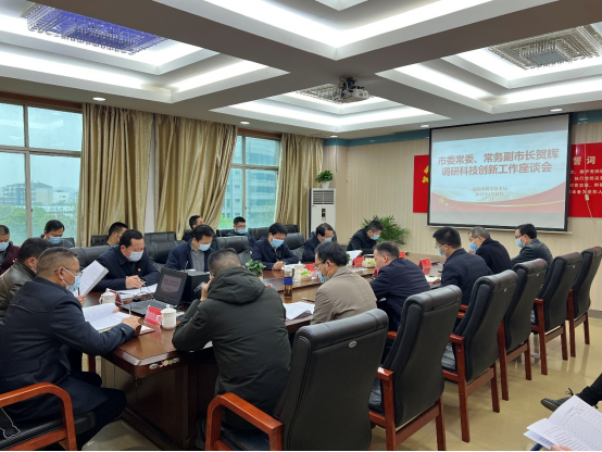 3月23日上午,市委常委、常务副市长贺辉深入市科技局调研并座谈,市政府副秘书长朱凤章,市工信局、市财政局、市统计局、市机关事务局、市税务局等单位主要负责人陪同调研。市政协副主席、市科技局局长高德文主持座谈会并作工作汇报,市科技局党组书记陈研文作补充发言,市科技局领导班子、各科室和二级机构负责人参加会议。