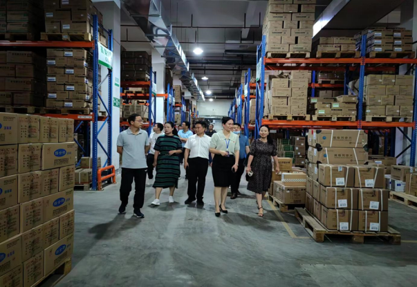 (图为考察津湘药业有限公司) 考察组一行先后到津湘药业有限公司、湖南汉森制药股份有限公司参观了生产加工车间、流通药品储藏库等地,深入了解企业发展现状和运行模式。