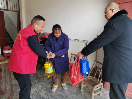 春节即将来临之际,为了让帮扶对象过上一个欢乐祥和的新年,2月1日,资阳区科技局局长肖佳波带队到新桥河镇黄甲山村,为结对帮扶的8户贫困户送去了食用油、牛奶、红枣、桂圆等慰问物资并致以节日的问候与祝福。 到达村里后,工作队先了解换届后的村支两委人员变动情况,然后来到贫困户家中拉家常,了解贫困户近期的经济收入、生活、工作以及身体状况,并向贫困户宣讲了中央“脱贫不脱政策、脱贫不脱责任、脱贫不脱帮扶、脱贫不脱监管”的政策,鼓励他们相信党和政府,积极向上、自立自强,让日子越过越好。同时叮嘱他们春节期间配合上级要求做好疫情防控,做好自我防护。 下一步,资阳区科技局会继续巩固前期脱贫攻坚成果,助力黄甲山村振兴发展。(资阳区科技局 唐丹)