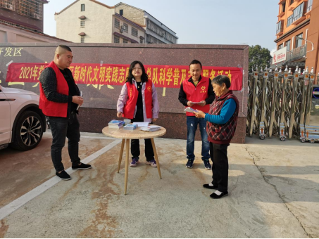 宣讲结束后,志愿者们在社区门口向群众发放科技科普知识和《益阳市文明行为促进条例》宣传册,并向他们讲解《条例》中的内容,引导他们养成良好习惯,提高文明素养。
