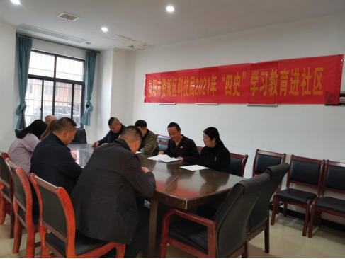 在社区1楼会议室,志愿者们组织社区干部群众进行了“四史”学习教育和市第七次党代会精神宣讲。