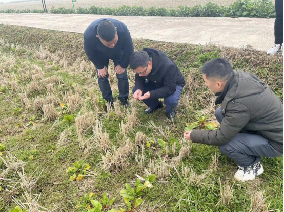 (图为调研组在田间查看绿肥生长情况) 随后,调研组到达草尾镇旭日绿色水稻种植专业合作社,合作社负责人崔剑平详细介绍了该合作社特有的“两稻三虾”种植模式。