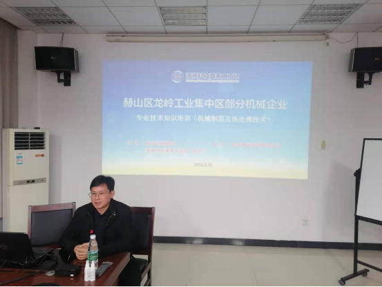 培训邀请湖南城市学院机电学院郭高峰教授、丁小兵教授为龙岭工业集中区重点机械企业进行机械制图与热处理技术讲授,内容涵盖画法几何与机械制图、CAD、UD(三维)、金属学与热处理、金属加工(成型)原理、材料力学等七个方面共12期内容。培训以现实操作和生动案例为主,重在致用,为提升基层一线技术人员业务技能具有重要意义。