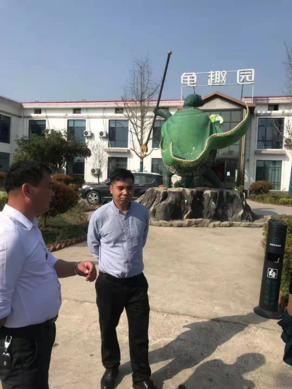 覃宋斌(右)在呈宝龟类繁养有限公司基地调研 |